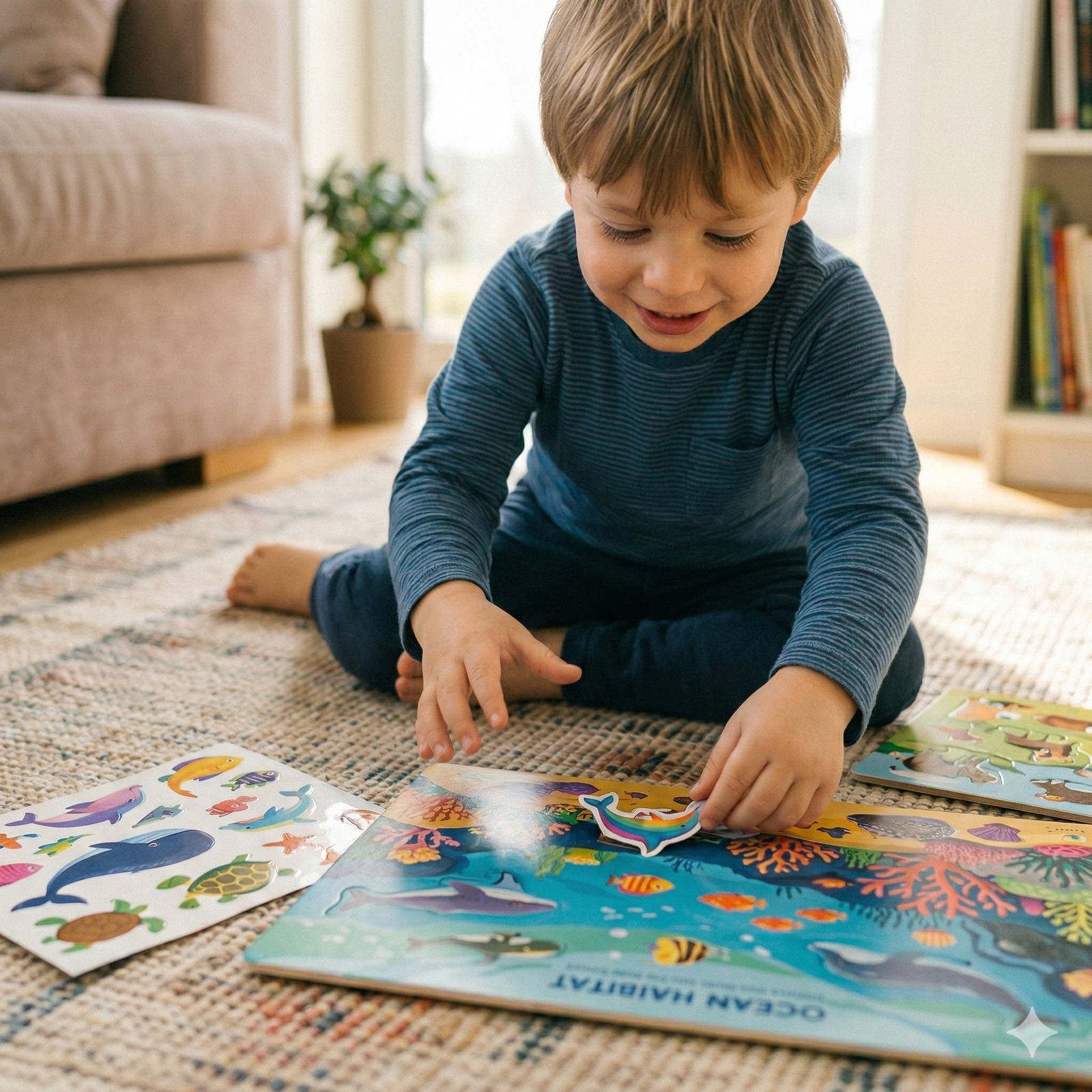 - Peeling and carefully placing the reusable animal pieces into their correct habitats naturally strengthens essential fine motor skills and pincer grasp.